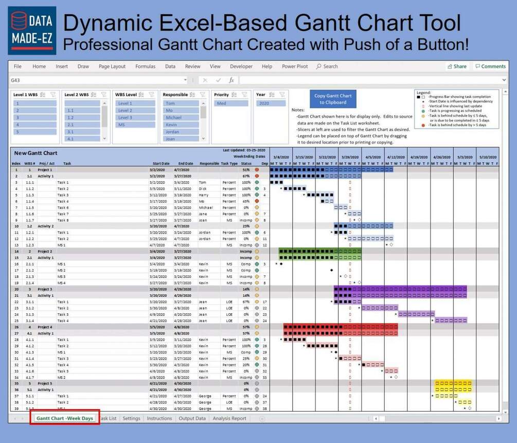 You'll get the Dynamic Excel Based Gantt Chart Tool .xlsm excel file (Rev_4.2.5)